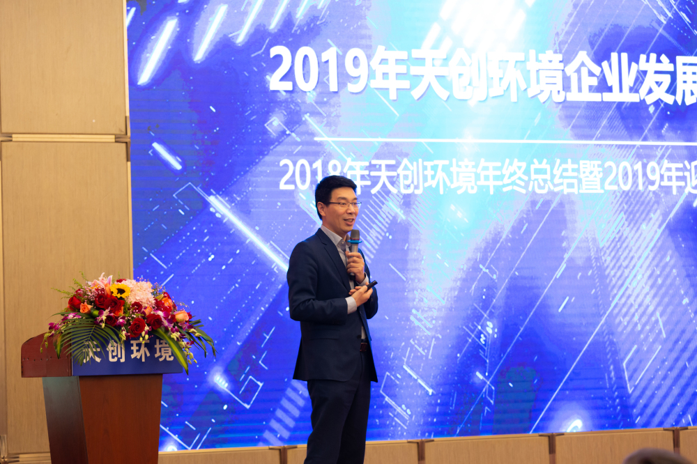 會(huì)議開(kāi)始,天創(chuàng)環(huán)境丁國(guó)良董事長(zhǎng)懷著激動(dòng)的心情致辭,總結(jié)過(guò)去一年取得的輝煌成績(jī),展望新的一年公司發(fā)展機(jī)遇。并發(fā)表了關(guān)于2019年企業(yè)發(fā)展思考的演講。面對(duì)國(guó)內(nèi)外嚴(yán)峻的經(jīng)濟(jì)環(huán)境,結(jié)合國(guó)內(nèi)的環(huán)保產(chǎn)業(yè)發(fā)展現(xiàn)狀,丁國(guó)良董事長(zhǎng)和大家一起分享了公司未來(lái)的發(fā)展方向及戰(zhàn)略思考。他講道:“2018年的環(huán)境產(chǎn)業(yè)是快樂(lè)與痛苦相隨,對(duì)于未來(lái),有機(jī)遇,更有挑戰(zhàn)。我們必須依托核心技術(shù),深耕水處理行業(yè)細(xì)分領(lǐng)域,重點(diǎn)打造產(chǎn)品品質(zhì),為客戶提供更加優(yōu)質(zhì)的服務(wù)。堅(jiān)持技術(shù)驅(qū)動(dòng)創(chuàng)新服務(wù)理念,繪就助力企業(yè)發(fā)展的新藍(lán)圖。”
